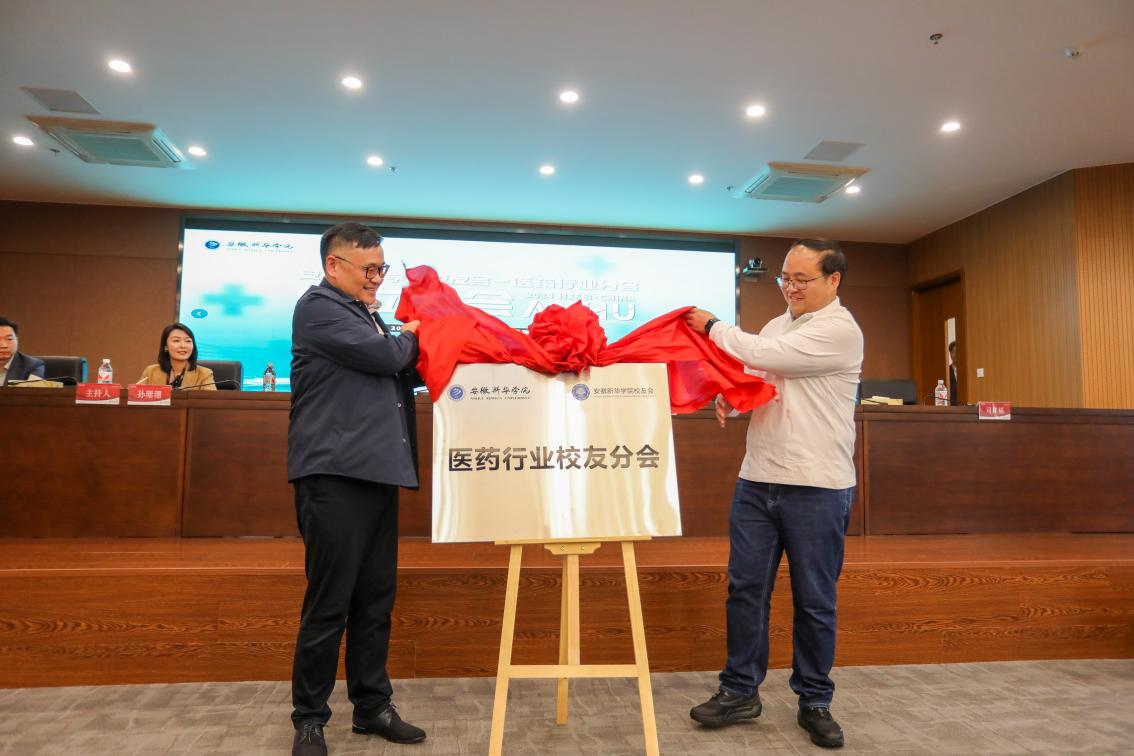 王孝武与荣誉会长司桂福为医药行业校友分会揭牌。