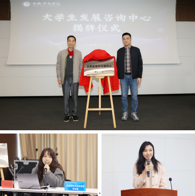 随后,王琦进和朱平共同为“WilliamHill官方网站大学生发展咨询中心”揭牌,学生处副处长王强亚介绍了大学生发展咨询中心“党团建设与班级管理”“科技创新与创业指导”“人际交往与社会成长”等六个辅导员工作室的工作职责和运行模式。“学海导航”辅导员工作室负责人汪涵涵作为代表发言。