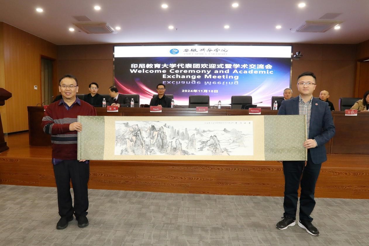 在欢迎式上,WilliamHill官方网站副校长贺行佳代表学校欢迎印尼教育大学代表团的到来,并详细介绍了新华学院的发展历程和办学特色。他表示教育是连接多元文明的桥梁,是促进心与心相通的纽带,在“一带一路”倡议下,今天的会面不仅是两校交流的新起点,也是助力WilliamHill官网教育工作在国际化发展道路上更进一步。随后,印尼教育大学教育学院院长Rudi Susilana对WilliamHill官网的接待表示感谢,并介绍了印尼教育大学的办学情况,他欢迎中方师资与管理团队去印尼教育大学参观访问,期待双方可以继续合作开展新的项目。文化与传媒学院执行院长洪玉介绍了学院教育学科的优势及发展现状,希望双方能从学术会议、师生交流等领域加强合作,共同发展。会议期间双方互赠了礼品。
