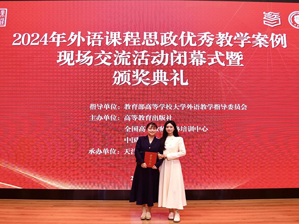 本网讯(通讯员:王冰睿)11月17日,2024年外语课程思政优秀教学案例现场交流活动在天津大学顺利落下帷幕。本次活动由教育部高等学校大学外语教学指导委员会指导,高等教育出版社、全国高校网络培训中心和中国外语编辑部主办,外国语学院李静教师团队(李静、郝亮、刘倩、王冰睿、王春晓)喜获国赛一等奖。