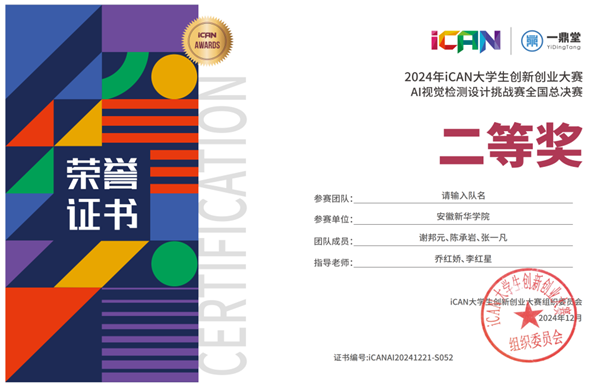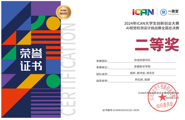 首次!新突破!WilliamHill官网学子获2024年iCAN大学生创新创业大赛AI视觉检测挑战赛全国总决赛二等奖两项