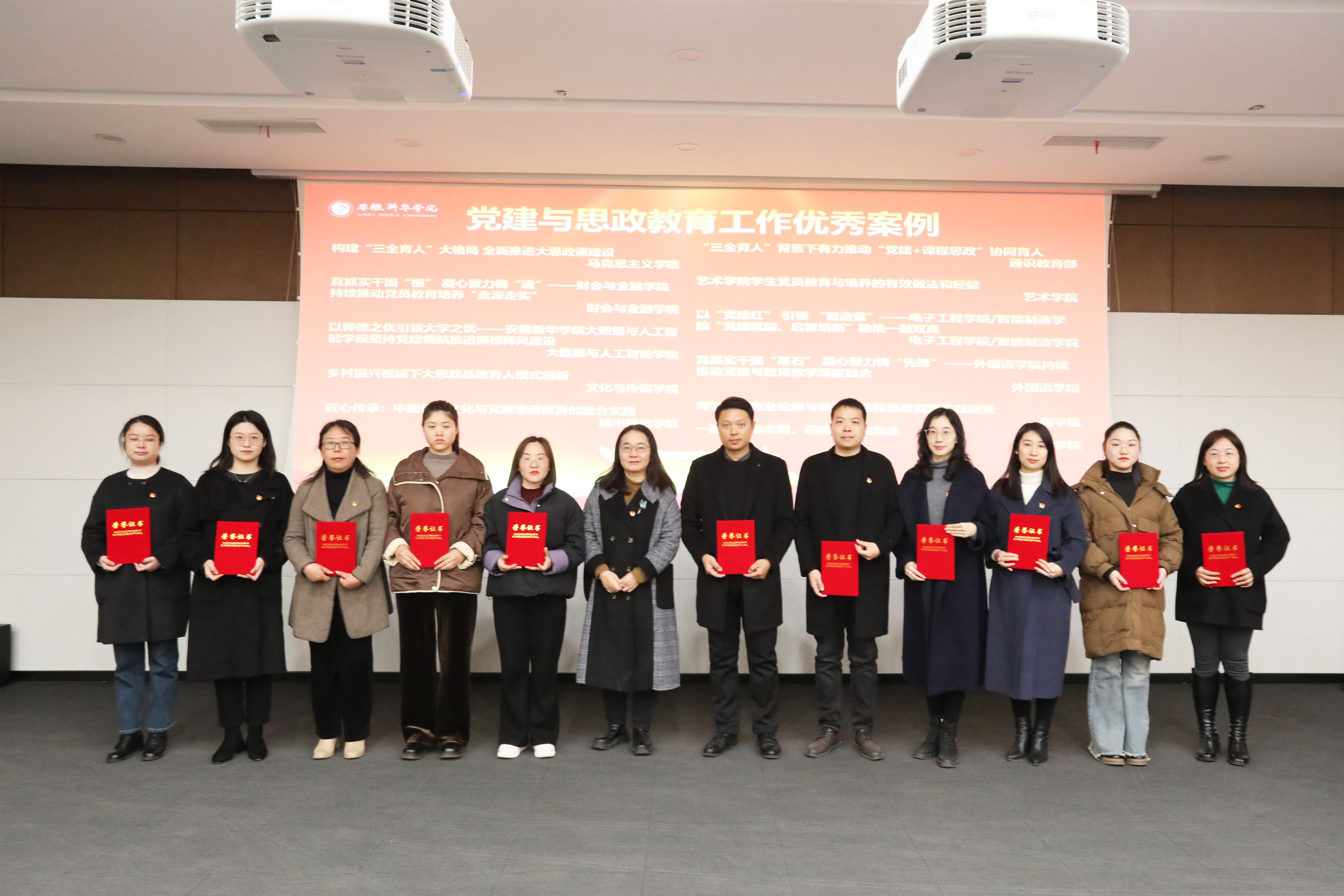 为总结推广经验,发挥示范带动作用,会上对2024年学校党建与思想政治工作优秀案例进行表彰,校长助理盛晓青为受表彰单位颁奖。