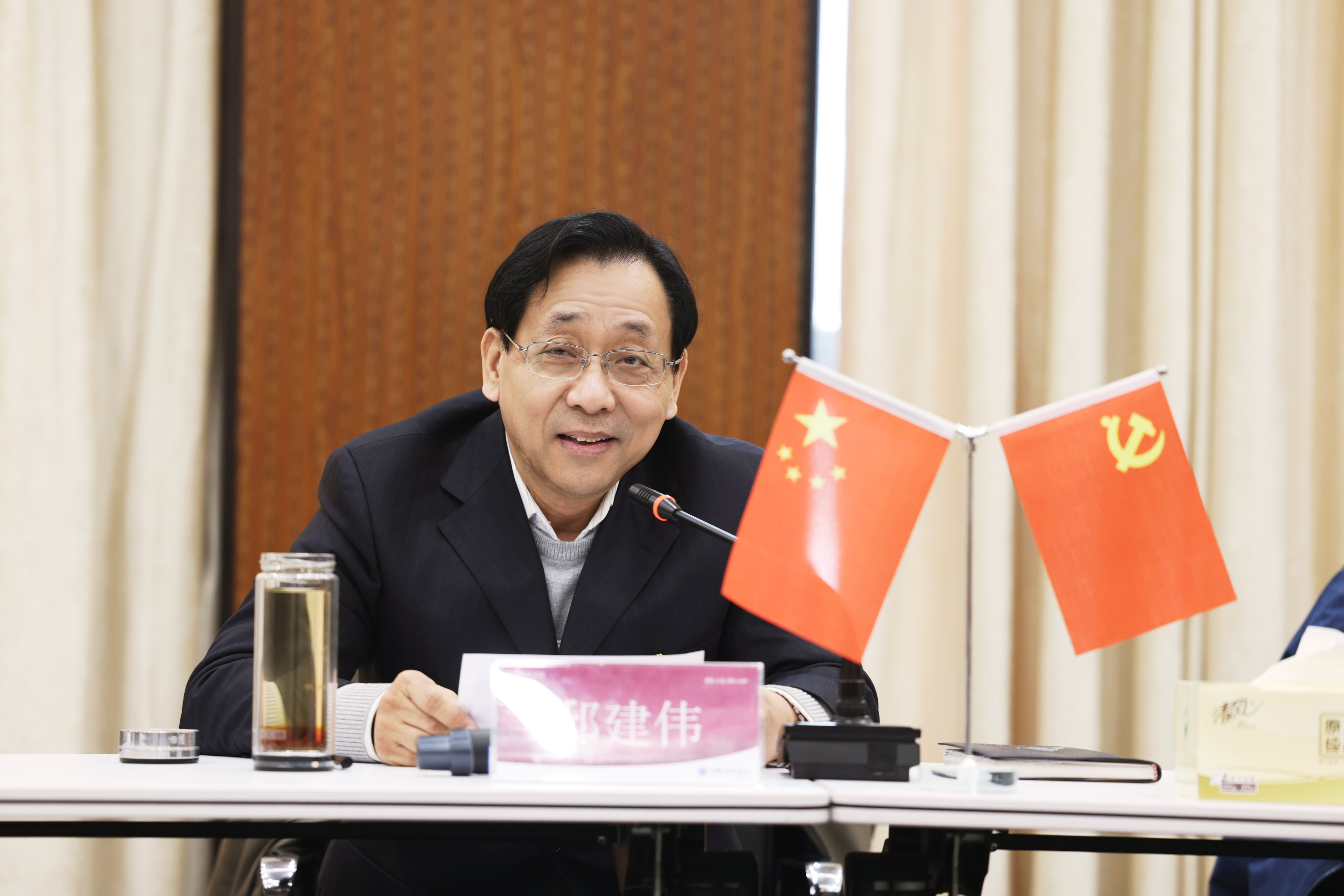 最后,省督导专员、校党委书记邸建伟作指导讲话,他充分肯定了学校2024年党建和思政工作取得的成绩,并就做好2025年学校党建与思想政治工作提出要求。