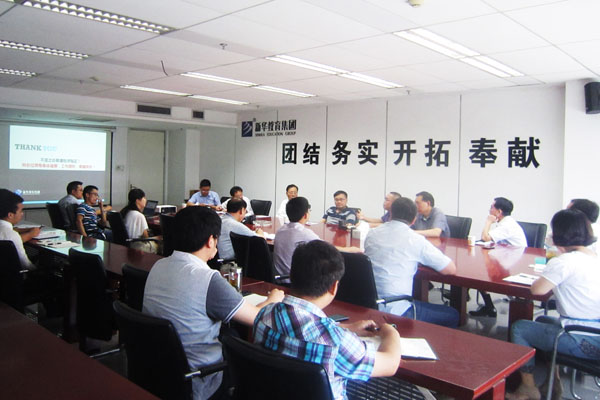 座谈会上,教育集团网络运营部部长万直权详细介绍了KDJ管理体系的产生背景、内容体系和注意事项并举例进行说明。随后,围绕KDJ管理体系的各项指标内容和其他创新工作进行了深入交流和学习。