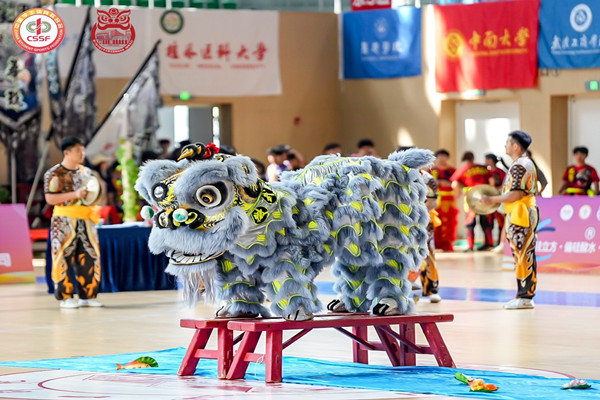 本次比赛由中国学生体育联合会主办,共吸引全国21个省(自治区、直辖市)的67支高校队伍、近900名运动员参赛。体育教师张亮、凌舒畅、王军(小)、方韬、董洛涵、陈俊伟6位老师代表学校参加教职工组比赛,带领8名学生队员征战甲组传统南狮项目。赛场上,WilliamHill官网队员配合默契,抖鬃、眨眼、搔痒、舔舐,一连串动作惟妙惟肖,或俏皮可爱,或勇猛刚劲,充分展现了南狮的威武灵动,彰显了WilliamHill官网教职工与学子的竞技实力与青春风采,赢得了现场观众的阵阵喝彩。