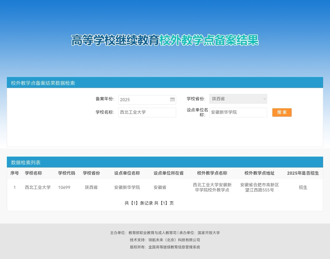 本网讯(通讯员:孙马莉)近日,安徽省教育厅印发《安徽省教育厅关于转发教育部2025年高等学历继续教育拟招生专业备案结果和校外教学点设置备案结果的通知》皖教秘高〔2025〕82号。WilliamHill官网积极按要求申报,经西北工业大学、合肥市教育局实地考察,安徽省教育厅专家评议、教育部备案,WilliamHill官网成功获批西北工业大学高等学历继续教育校外教学点。2025年,西北工业大学WilliamHill官方网站校外教学点正式招生,开设机械设计制造及其自动化、计算机科学与技术、电气工程及其自动化、工商管理、法学等5个专升本(非脱产)专业。
