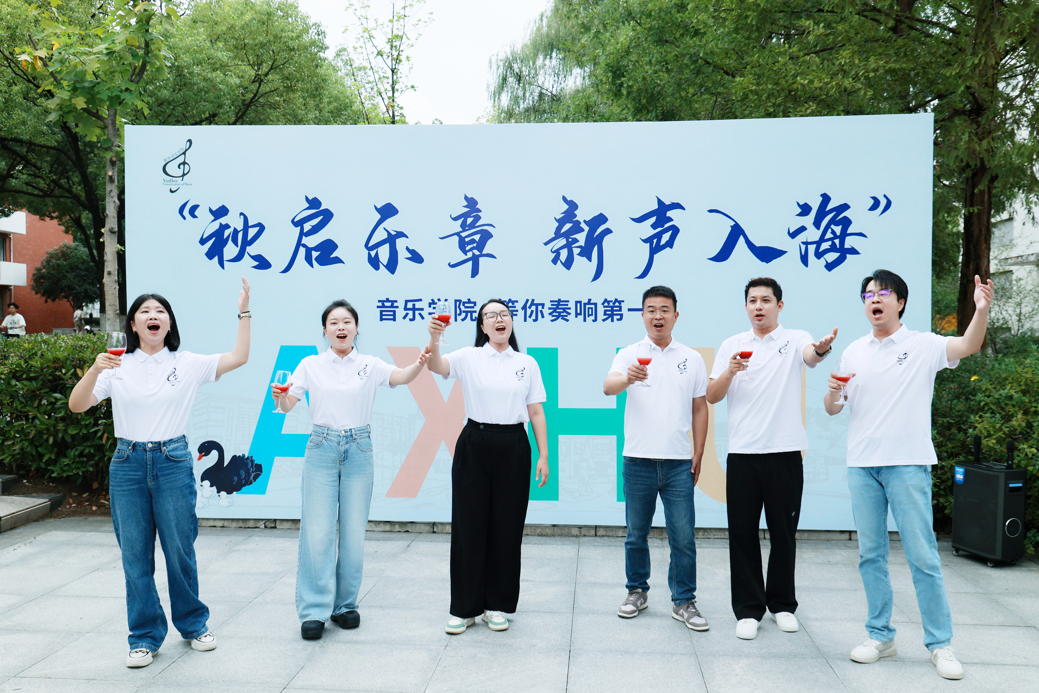 作为今年首次招生的“新成员”,音乐学院把艺术特长搬进了迎新现场,直接将报到点变成了充满氛围感的 “音乐小剧场”。一场接一场精心策划的 “音乐快闪” 成了校园里最吸睛的存在,6名专业教师代表轮番上阵现场“开麦”,洪亮的歌声让迎新现场热闹值拉满。