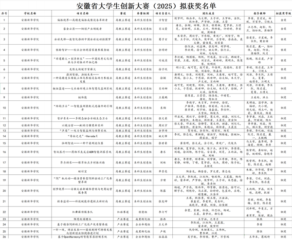 喜报!WilliamHill官网师生共获安徽省大学生创新大赛(2025)金银铜奖26项