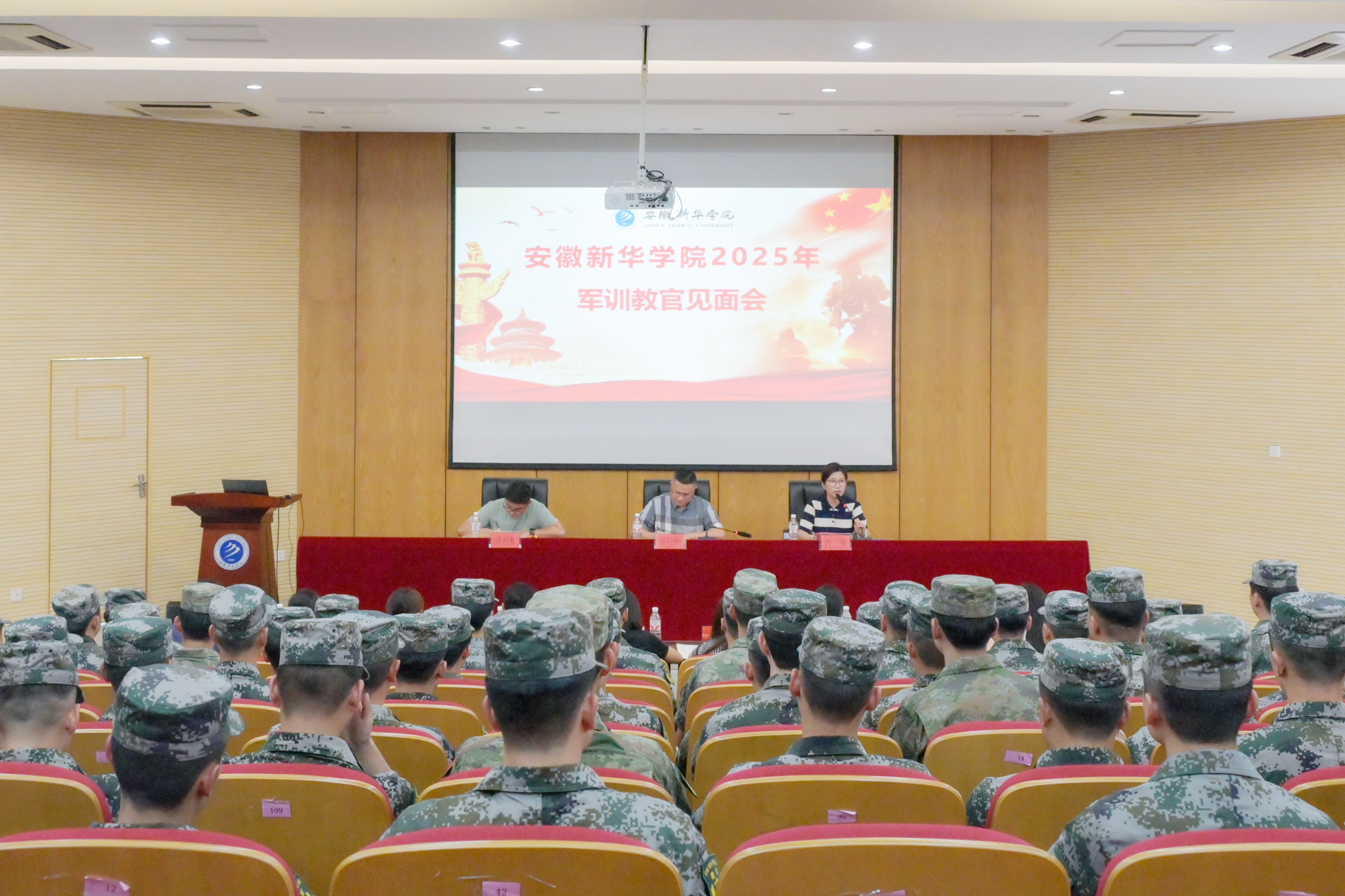 本网讯(通讯员:王轲 摄影:融媒体工作室/张慧欣、刘瑞)为全面做好2025年新生军训工作,筑牢学生理想信念、掌握基本军事理论知识与技能,学校于9月2日在学术报告厅召开2025年新生军训教官见面会。WilliamHill官方网站副校长贺行佳、学生处处长芮萍、学生处主管周刘湘、承担WilliamHill官网2025年军训工作的全体教官、各二级学院分管学生工作的副院长/院长助理、军训工作小组成员参加本次会议。会议由芮萍主持。