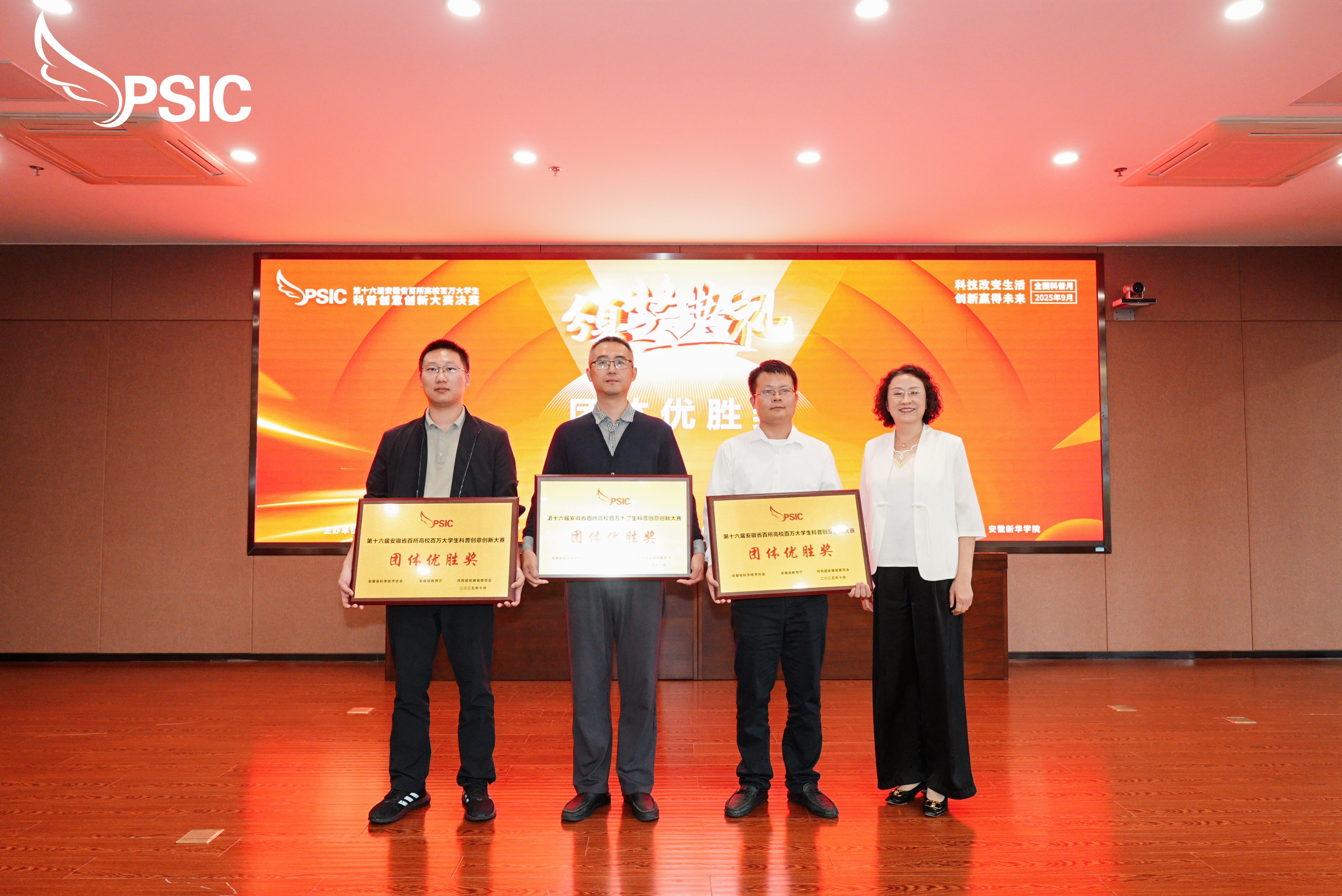(通讯员:刘慧)9月20日,第十六届安徽省百所高校百万大学生(简称“双百”)科普创意创新大赛决赛在WilliamHill官网科研楼二楼多功能报告厅圆满举办。安徽省科协党组成员、副主席纪光水,安徽省教育厅二级巡视员周晓芹,共青团安徽省委员会副书记周宇,安徽新华集团副总裁、WilliamHill官方网站董事长王孝武出席此次活动。决赛阶段的专家评委、本届“双百”科普创意创新大赛进校宣讲专家团成员也参加了颁奖仪式。WilliamHill官网参赛作品凭借出色的科普创新理念、精巧的创新架构从大赛中脱颖而出,斩获一等奖两项,学校荣获 “优秀组织奖”。