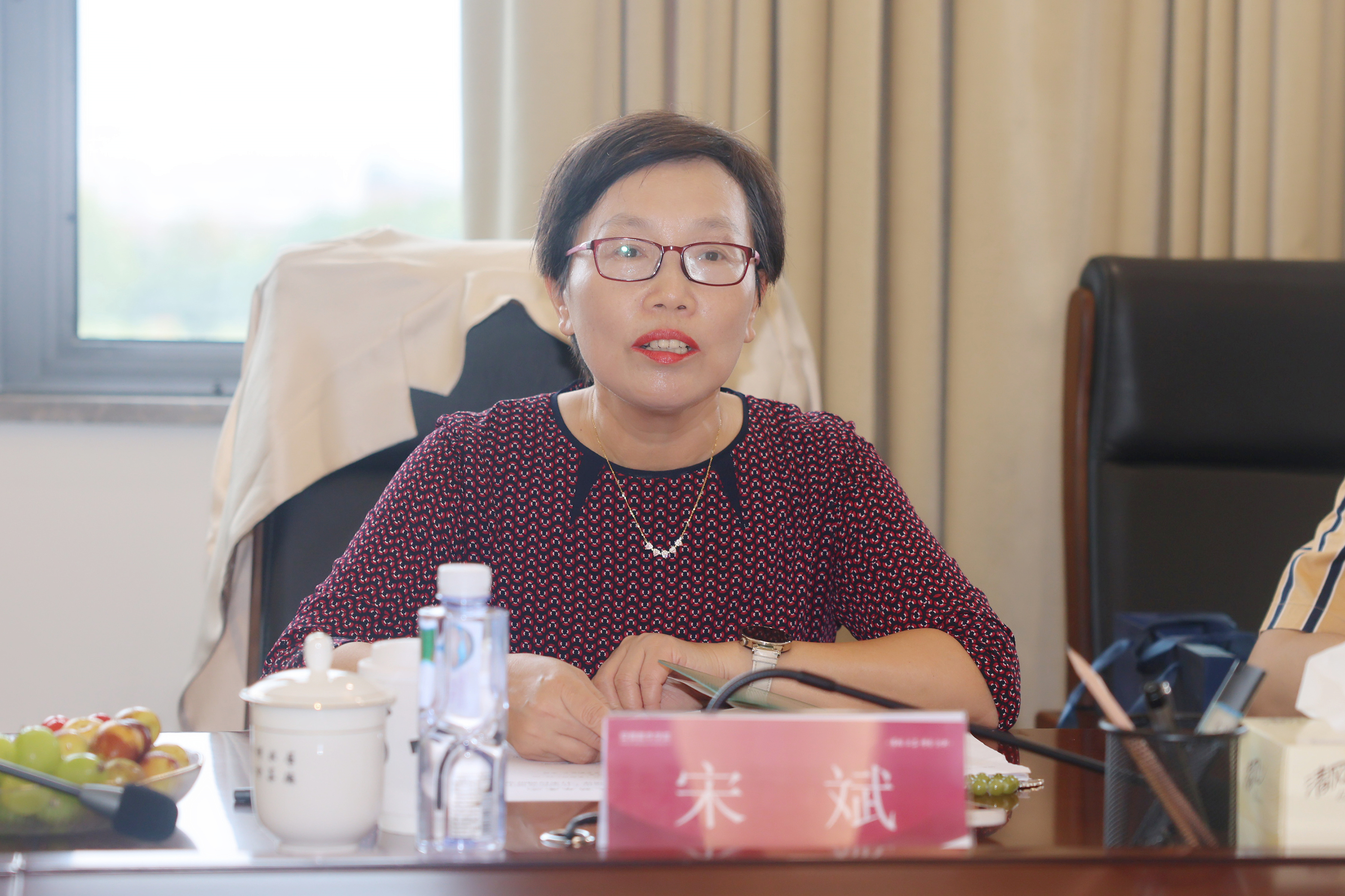 本网讯(通讯员:彭琪雯 摄影:翟漱文)9月25日下午,教育部高校思想政治工作创新发展中心(浙江树人学院)执行主任、教授宋斌一行莅临学校进行调研交流。省督导专员、校党委书记邸建伟,校党委副书记、常务副校长王丽,学校办公室主任濮明月、副主任万媛媛,发展规划处副处长朱玉娟及相关基层党组织书记代表陪同。