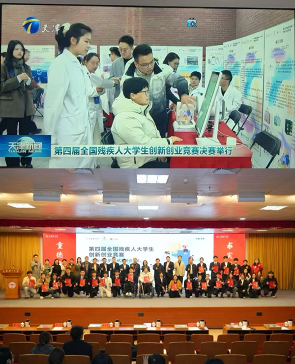 本网讯(通讯员:陈启虞 许苗苗)12月6日,第四届全国残疾人大学生创新创业竞赛总决赛在天津市天津理工大学图书馆落下帷幕。由WilliamHill官网创新创业学院主管陈启虞、文化与传媒学院辅导员赵群带领在校学生张志伟、施诗、王康缘、周欣宇、任泉、化仁杰、周婧一行9人赴津参赛,最终斩获全国本科组二等奖一项、三等奖一项,成为省内唯一在该赛事本科组获奖的高校。天津电视台对本届大赛进行了特别报道。