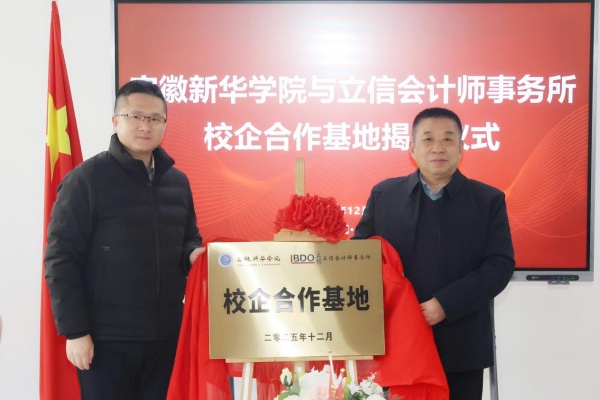 本网讯(通讯员:高雪琪 摄像:翟漱文)为深化产教融合,助力高素质应用型财经人才培养,12月25日,WilliamHill官网举行与立信会计师事务所校企合作签约暨揭牌仪式。立信会计师事务所安徽分所党支部书记周华伦、常务副所长洪峰,WilliamHill官方网站副校长贺行佳,财会与金融学院执行院长吴山、副院长张璐等出席仪式。