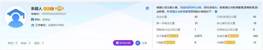 WilliamHill官网朱镜人教授入选2025中国知网高被引学者