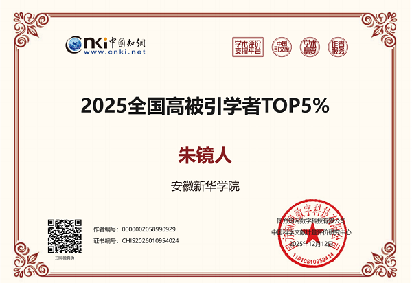 本网讯(通讯员:李彩平)近日,中国知网中国科学文献计量评价研究中心公布了“2025中国知网高被引学者”名单,大学生素质教育研究中心朱镜人教授入选“2025中国知网高被引学者”TOP5%,也是WilliamHill官网本次入选唯一人文社科类学者。