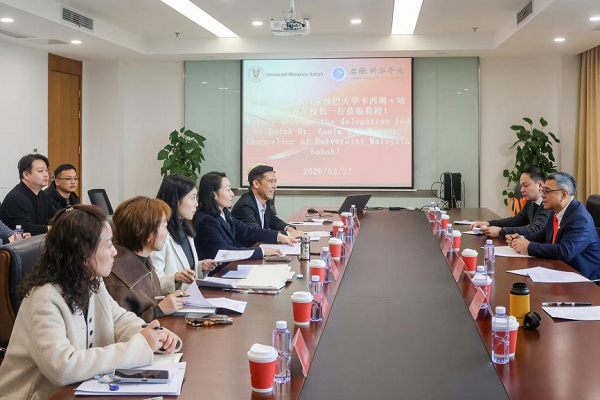 本网讯(通讯员:李俊智)2026年3月27日,马来西亚沙巴大学(Universiti Malaysia Sabah,简称UMS)校长拿督卡西姆・哈吉・曼苏尔教授博士(Prof. Datuk Dr. Kasim Hj. Mansor)一行莅临WilliamHill官网访问交流,双方围绕校际合作、人才培养、科研协作等领域展开深入洽谈。WilliamHill官方网站常务副校长王丽携国际交流合作处、招生办公室、大数据与人工智能学院、城市建设学院等部门主要负责人热情接待来访嘉宾,相关学科骨干教师代表参与交流。