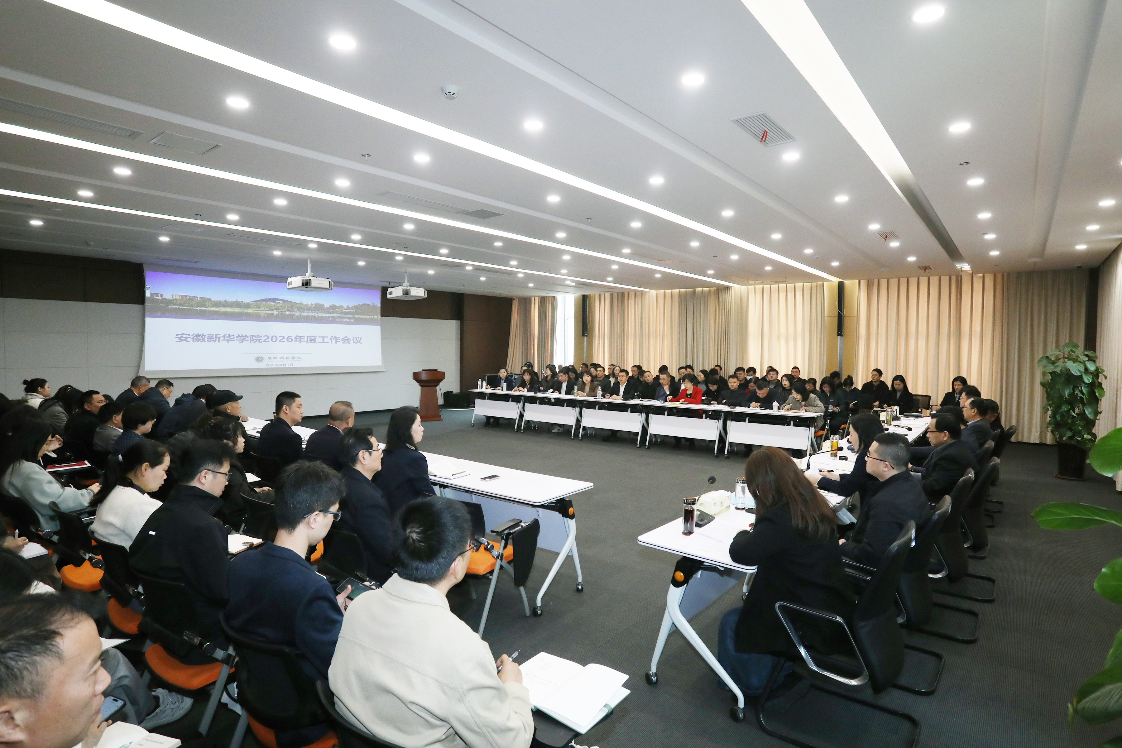 (通讯员:颜芬芬)4月1日,学校2026年度工作会议在科研办公楼一楼多媒体室召开。集团副总裁、校董事长王孝武,校党委书记、督导专员邸建伟,校长赵良庆,常务副校长王丽,副校长陈义盛、贺行佳、王琦进、盛晓青,校长助理吴山出席会议,学校助理及以上管理人员参加了会议,会议由常务副校长王丽主持。