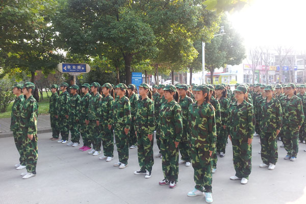 本网讯(通讯员  彭洪磊)经过了连续几天的军训,外国语学院女生们白皙的脸上已微微泛起了一层古铜色。外国语学院女生居多,整体身体素质相对较弱,但很多同学都坚持带病上阵,在严格的训练下丝毫没有退缩。