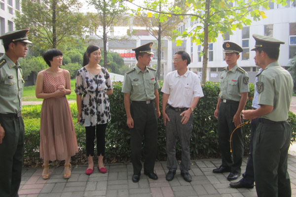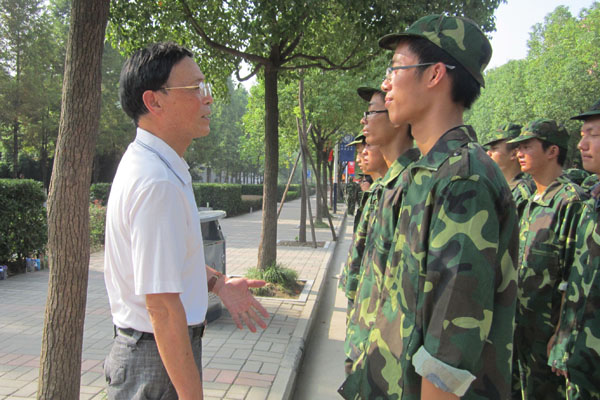 本网讯(通讯员  刁欢)为进一步加强学院与军训教官之间的联系,促进新生军训效果,在新生军训期间,药学院院长张国升教授、副院长王飞及新生辅导员前往新生军训现场,慰问教官及军训新生。慰问现场,张国升代表药学院对教官们的辛苦训练表示感谢,同时对参加军训的新生表示慰问。