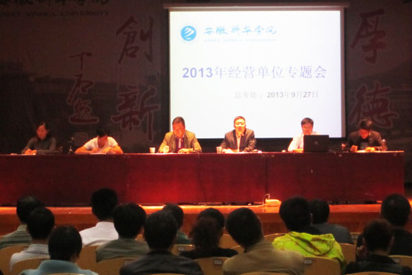 本网讯(陈加启)9月27日下午,学校召开2013年经营单位专题会议,通报有关情况,强调了校内经营单位在评估期间工作要求。副院长倪征出席会议并讲话,总务处工作人员及各经营单位负责人参加了会议。