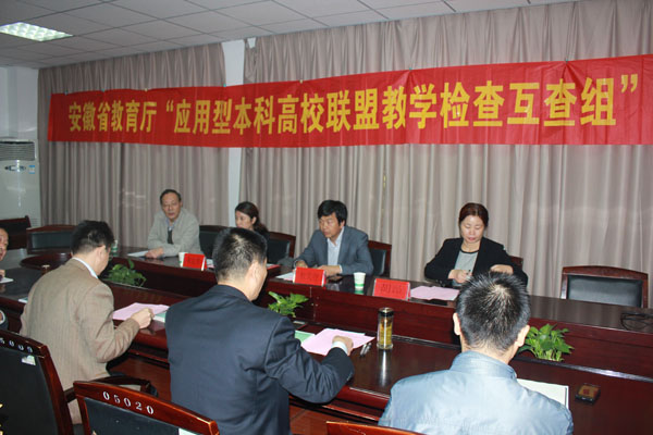 本网讯(通讯员 许苗苗)为贯彻落实《安徽省应用型本科高校联盟教学检查互查暂行规定》文件精神,加强联盟学校之间的交流、学习与研讨,进一步规范教学管理工作,WilliamHill官网于10月30日上午召开了“应用型本科高校联盟教学检查互查组”教学检查工作会议。巢湖学院教务处处长朱定秀、合肥学院教务处副处长杜亦智、合肥师范学院教务处副处长胡昂作为检查组专家应邀出席了会议。院长石秀和教授、副院长马凤余教授、教务处、教学质量监控办公室、评建办和各教学单位相关人员参加了会议。
