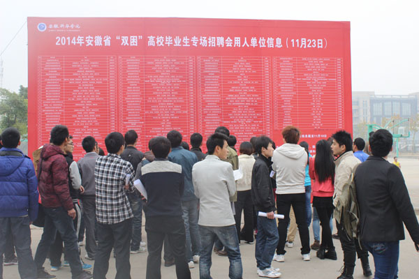 此次招聘会由安徽省教育厅、国家开发银行安徽省分行、安徽省人力资源和社会保障厅、安徽省国有资产监督管理委员会联合举办,旨在深刻贯彻党的群众路线教育实践活动和党中央“推动实现更高质量的就业,做好以高校毕业生为重点的青年就业工作”、“做好困难学生资助工作”的精神,积极推动“双困高校毕业生就业工作”,为广大家庭经济困难高校毕业生搭建就业平台。招聘会受到上级主管部门的高度重视,安徽省委教育工委副书记江春、国家开发银行安徽省分行副行长傅绪琏、安徽省人力资源和社会保障厅副厅长刘少华、国家开发银行总行评审三局助学贷款二处副处长胡勇在安徽省大中专毕业生就业指导中心主任鲍勇、安徽省学生资助管理中心主任李炳银、国家开发银行安徽省分行客户二处处长洪为、安徽省人才服务中心副主任吴传华、安徽省国有资产监督管理委员会企业分配处副处长凌萍等领导及校领导胡昭林、袁种宝陪同下,亲临招聘会现场指导工作,并亲切会见了部分省内外用人单位负责人,详细了解了用人单位的需求情况,对他们来校招聘表示欢迎和感谢。