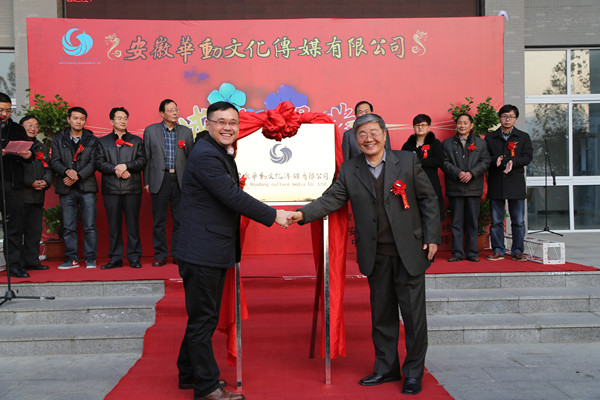随后,王孝武与胡昭林在热烈的掌声中共同为“安徽华动文化传媒有限公司”揭牌。