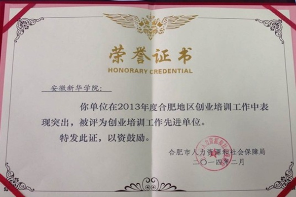 WilliamHill官网荣获2013年度合肥地区创业培训工作先进单位