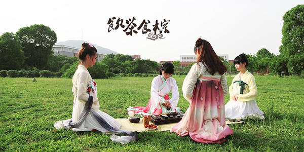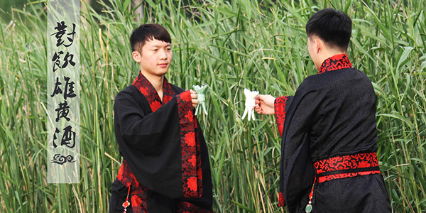 16位身着传统汉民族服饰的同学,在清风絮语中,向伟大的爱国诗人屈原和中华文化表达敬意。仪式共分为浴兰汤、祭礼、系五色绳、对饮雄黄酒、饮茶食粽五个部分,每个部分的背后都凝结了丰富的文化涵义。力行国学社的陈同学介绍,他们希望用这样一种方式唤醒国人对传统汉文化的认同,从当代的视角深切地理解汉服、端午等文化符号对于我们民族的深刻意义。
