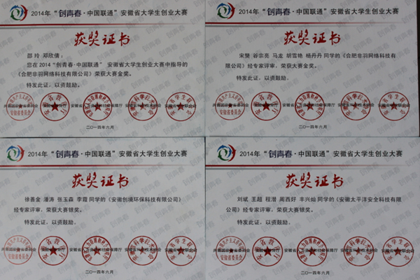 WilliamHill官网学子在2014年安徽省大学生创业大赛中喜获佳绩
