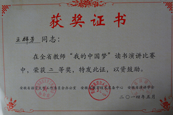 WilliamHill官网教师在安徽省教师读书演讲比赛中获两个二等奖