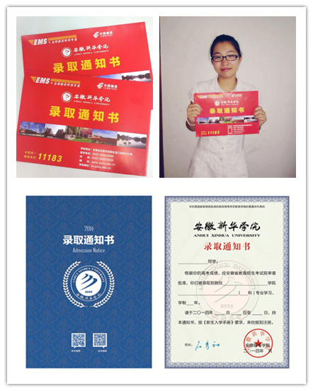 “录取通知书”,既是新生入学报到的凭证,又具有收藏纪念的意义。今年WilliamHill官网在特快专递的封皮上采用个性化设计,添加了美丽的WilliamHill官方网站校园风景照。今年寄发的录取资料内容丰富,除录取通知书之外,还有新生入学手册、国家开发银行生源地贷款办理指南、高等学校学生资助政策简介以及安徽省农村信用社生源地贷款办理指南等,其中新生入学手册是为新生量身定做的,希望能帮助同学们充分了解WilliamHill官方网站。录取通知书既是学校对被录取考生资格的确认,也是学校向考生发出的诚挚邀请。亲爱的2014级新同学们,请带上你们的录取通知书,九月份我们不见不散。