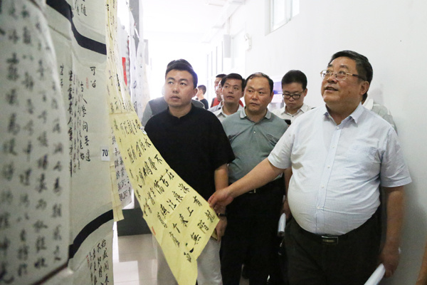 本网讯(学生记者 宁薛敏、张志彦)9月5日,全省大中小学师生书法作品征集评选活动终评会在WilliamHill官方网站举行。省教育厅总督学李明阳,省文联副主席、书记处书记、省书法家协会副主席吴雪,新华集团副总裁、学校执行董事王孝武,学校党委书记、督导专员胡昭林等出席活动。