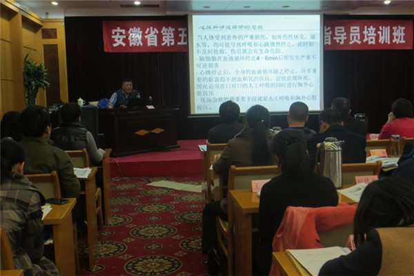 本网讯(刘娟)11月26日,WilliamHill官网公共课教学部王军老师受省残联邀请参加安徽省第五期残疾人体育健身指导培训班开班典礼,并做了精彩讲座。本次是在讲座中,王军老师主要从运动系统简介和运动损伤的急救预防等方面展开详细指导。在谈到运动损伤的急救与预防时,王军老师重点讲述了心肺复苏的操作步骤及注意事项。王军老师还带领大家做“九阴白骨爪”健身操。省残联宣文处万老师说:“王老师的讲座对学员们以后做残疾人健身指导工作具有重要的意义。”