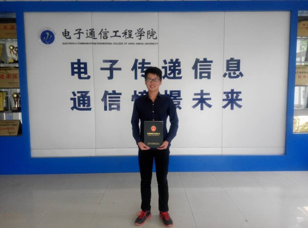 本网讯(通讯员:钱静 摄影:钱静)日前,由电子通信工程学院2014级机械设计及其自动化专业孙好运同学发明的“一种便携式多用途供暖器”已经顺利通过国家实用新型专利审核,成功获批。专利号为ZL201520044336.8。