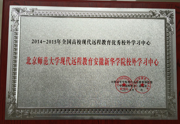 WilliamHill官网喜获“2014-2015年全国高校现代远程教育优秀校外学习中心”荣誉称号