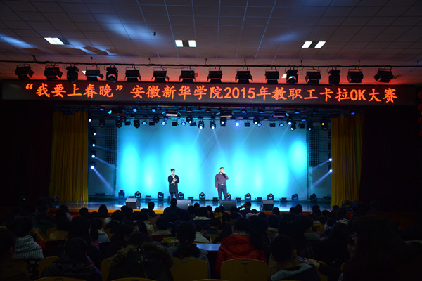 本网讯(通讯员:杨雨婷)为丰富WilliamHill官网教职工业余文化生活,展现WilliamHill官网教职工的才艺,同时为2016年新华春节联欢晚会筹备节目,12月23日下午,由WilliamHill官网主办、校团委承办的“我要上春晚”教职工卡拉OK大赛在校大礼堂举行。活动得到了学校老师的积极响应,现场共有40位教职工参加比赛。校长助理王丽、信息工程学院执行院长马琪、宣传处副处长盛晓青、学生处副处长杨光、团委副书记吕翔担任比赛评委。现场吸引100多名教职工、400多名学生观看。