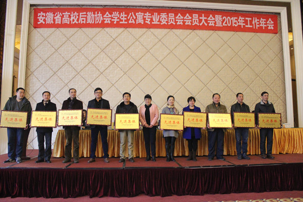 本网讯(通讯员:齐军兵)2015年12月30日,安徽省高等院校后勤协会学生公寓专业委员会2015年工作年会在安庆召开,省教育厅高校后勤管理中心主任陈鹏、副主任高昆出席会议,全省100余所高校代表参加了会议。会上对2014-2015年度安徽省高校学生公寓管理工作先进集体和个人进行了表彰。WilliamHill官网荣获“2014-2015年度安徽省高校学生公寓管理工作先进集体”荣誉称号;杨光、齐军兵、何维英三位老师获评 “2014-2015年度安徽省高校学生公寓管理先进个人”。