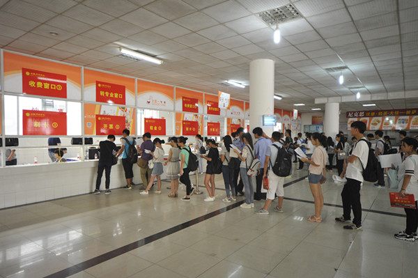 当天早上六点多,原本静悄悄的华园里呈现出一片热闹的景象,前来报到的新生已经迫不及待地涌入华园。迎新志愿者手拉行李箱,老师为新生办理报到手续,校园警务维持缴费秩序……校园里的迎新工作如火如荼、紧张有序地开展着。学校成立的迎新工作领导小组,对各单位、各部门迎新工作进行了提前谋划、周密部署,确保从接站指引、院系接待、行李寄放、注册缴费、物品领用到入住宿舍,各个环节安全、顺利、有序。各二级学院报到处、咨询处、宿舍用品发放处、家长休息处、就餐处等各个工作点都树立了醒目标志,全方位后勤服务为新生顺利报道提供保障。