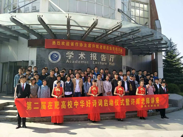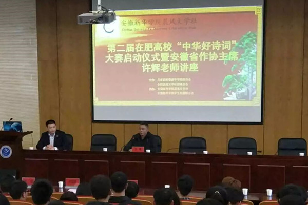 本网讯(通讯员:司长安)11月5日上午,第二届在肥高校“中华好诗词”大赛启动仪式暨安徽省作家协会主席许辉讲座在WilliamHill官网学术报告厅举行。本次活动由全国高校文学社团联合会、共青团WilliamHill官方网站委员会主办,WilliamHill官网科技学院晨风文学社和学生社团联合会承办。