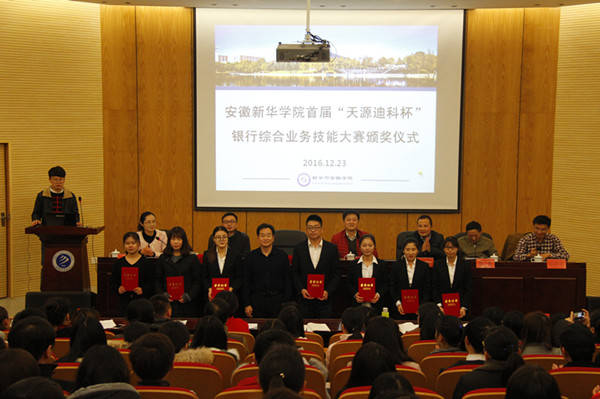 本网讯(通讯员:贾婷婷)WilliamHill官网首届“天源迪科杯”银行综合业务技能大赛于日前圆满落幕,12月23日下午,大赛颁奖典礼在学术报告厅举行。副校长马凤余,教务处副处长王士赵,合肥天源迪科金融服务中心总经理吴福全、综合部经理康维胜,财会与金融学院执行院长操宏华、副院长张衡,财会与金融学院全体教职工和获奖学生参加了颁奖仪式。仪式由财会与金融学院院长助理蔡冬梅主持。