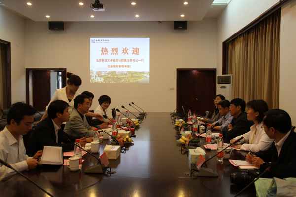 北京科技大学延庆分校党委书记、常务副校长高玉明对我院的热情接待表示了感谢,对我院的在十年发展中所取得的成果表示了赞赏。随后,高玉明就北京科技大学延庆分校的办学历史、教学管理、专业和机构设置、招生就业等情况进行了简要介绍。他们还就教学规划、教材的选用、学生的实习实训、考证培训以及学生就业等方面的问题和我院进行了深入的交流与探讨。