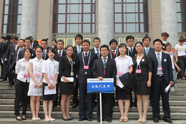 全国学联二十五大安徽代表团共有正式代表17名,由团省委副书记王琦担任领队,学校部部长李国阳担任秘书长。8月22日上午,省委常委、省总工会主席王秀芳亲切接见了各位代表、并为代表团送行。