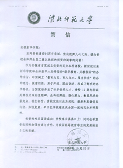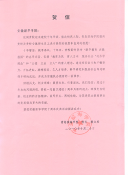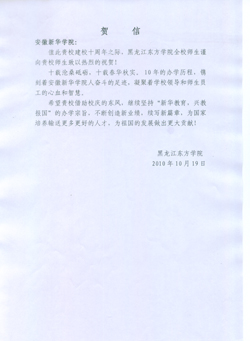 在全院师生共庆华园10周年华诞之际,省内外各大高校也纷纷发来了贺信,向我院建院10周年表示热烈的祝贺!