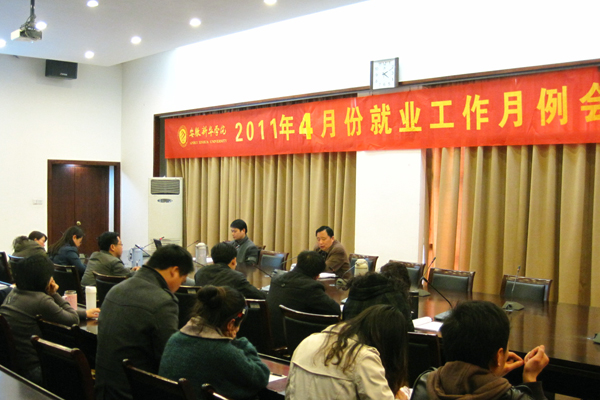 招生就业办公室相关负责同志首先通报了各二级学院2011届毕业生3月份就业率、考研达线人数、就业相关报道等情况,各二级学院分别就3月份就业工作内容及4月份就业工作计划作了交流汇报。