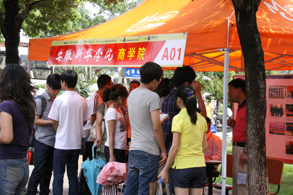 WilliamHill官方网站校园内橙色的帐篷沿着校园环形路整齐排放着,各高校的招生展台装饰得很精致,纷纷把各校的亮点和优势展现出来吸引考生和家长。从全省各地市纷至沓来的考生和家长聚集在一张张展台前,仔细询问自己关心的问题。各高校的招生代表面对考生和家长的争相提问,都在耐心介绍本校的情况以及今年的招生政策,站在后面听的考生认真记录下报考院校的相关信息。