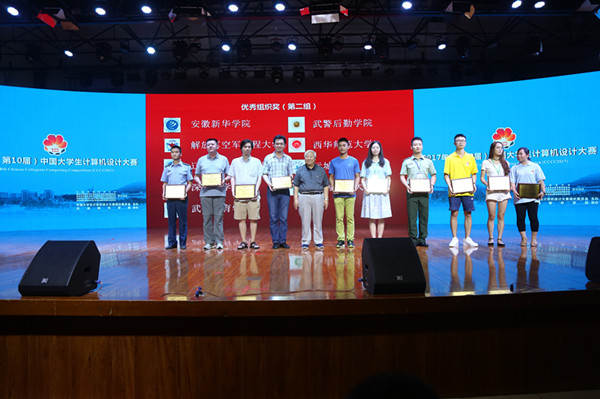 与会领导和嘉宾为一、二、三等奖和组织奖获得者颁奖,并合影留念。至此,第十届中国大学生计算机设计大赛数字媒体类动漫游戏组、微课与教学辅助类现场决赛圆满落下帷幕。
