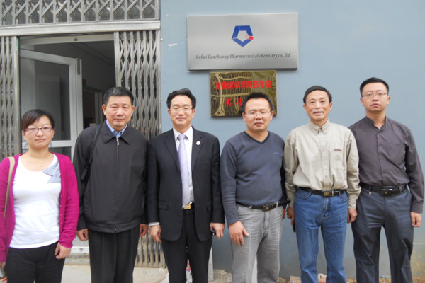 9月22日下午,副院长马凤余、药学院院长张国升教授等一行来到安徽联创药物化学有限公司参观访问,并共同举行了药学院实习基地揭牌仪式。安徽联创药物化学有限公司相关负责同志接待了马凤余一行。