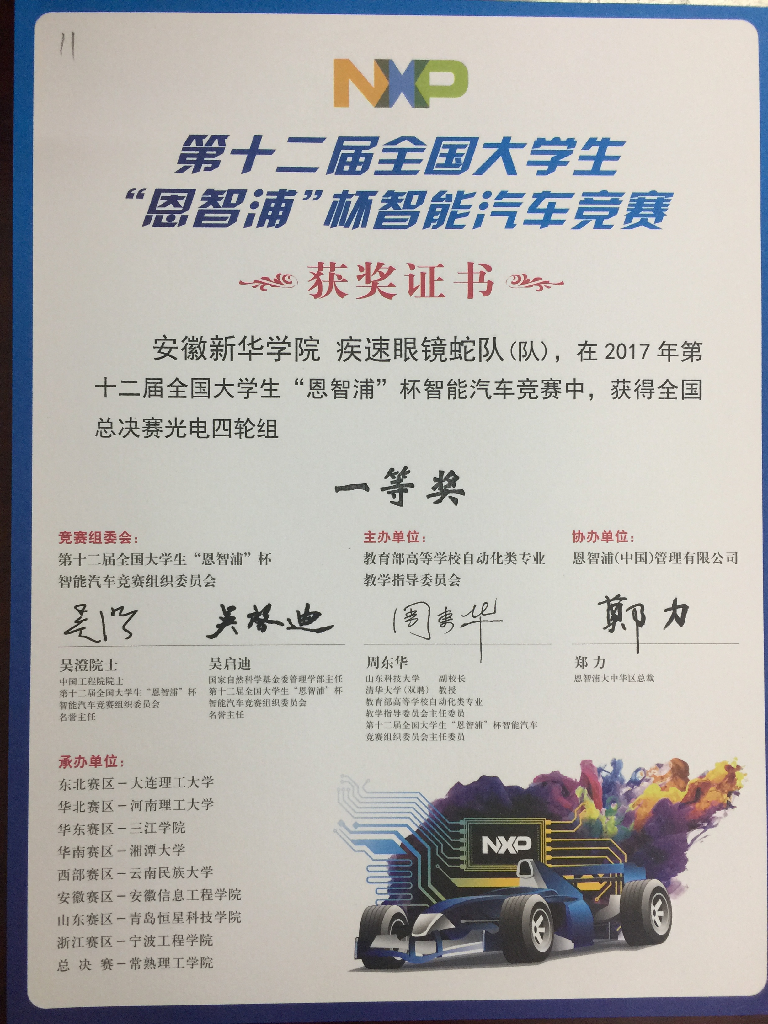 WilliamHill官网在第十二届“恩智浦杯”全国大学生智能汽车竞赛中喜获两项全国一等奖