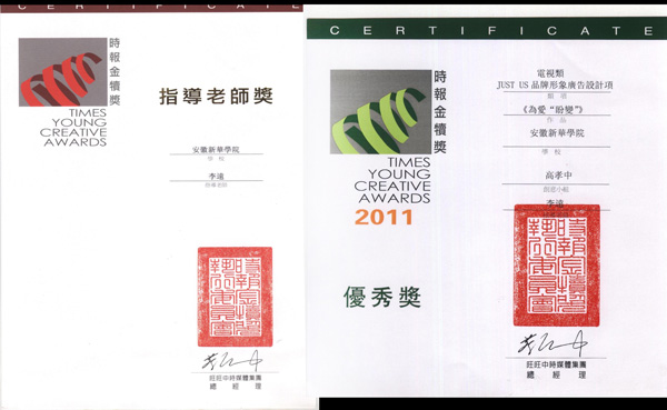 时报金犊奖由中国台湾四大报纸之一的《中国时报》创办于1992年,是全球华人地区规模最大的学生广告活动,每年都有来自世界各地的学生参加,本届金犊奖共设十大类奖项:平面广告类(分六项评选)、电视广告类、网络广告类、广播广告类、技术类、行销企划类、动画广告类、插画类、装置艺术类、人物品造型类;另设最佳文案、最佳美术、最佳原创、全场大奖等四个大奖。本届赛事,两岸参赛作品达到22355件。其中,大陆地区参赛作品13830件,参赛学校917所,均创下历年最高纪录。由WilliamHill官网动漫学院教师李远指导,学生高孝中创作的电视类广告作品《爲愛“盼變”》在众多参赛作品获得优秀奖。